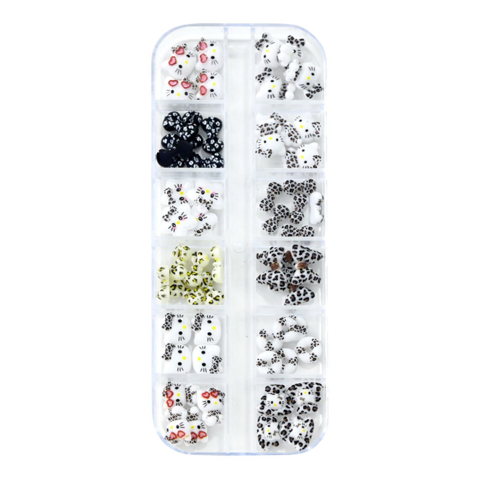 【特価セール】ネイルパーツ キティ リボン 1ケース入り 可愛い 大きい キティ ネイルパーツ ストーン 3D 立体 リボン デコパーツ 猫 蝶結び ネイルアート ジュエリーパーツ 手芸 ハンドメイド レジン パーツ (ヒョウ柄 黒)