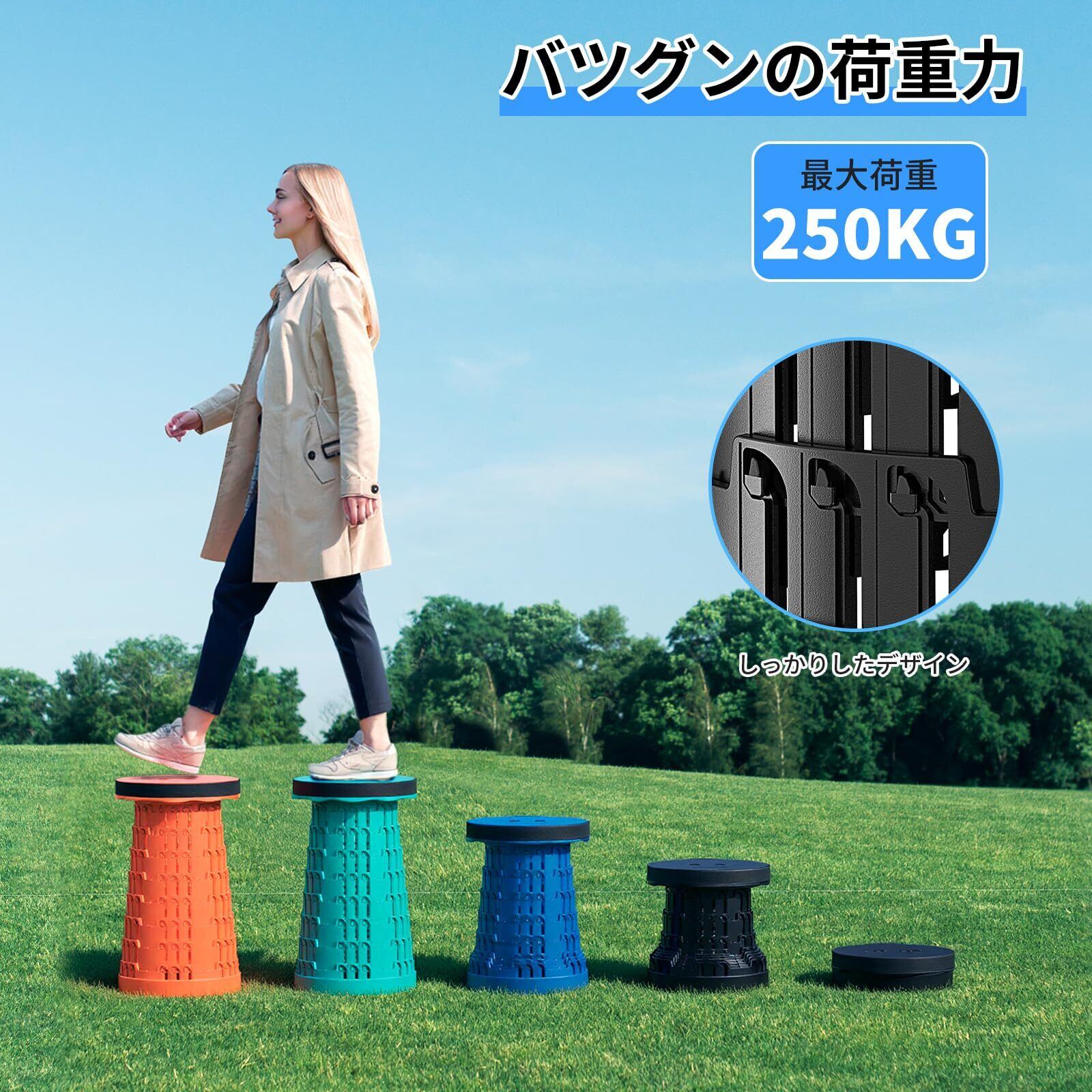 LEEKEY 折りたたみ椅子 7-45cm高さ調節 アウトドアチェア 折り畳み椅子 耐荷重 250kg 超軽量 コンパクト 折りたたみ踏み台 室内 一秒開閉できる 伸縮式 持ち運び便利 防水 アウトドア キャンプ チェア 携帯 スツール 低い 風呂/釣り/フェス/運動会/観戦/屋内/屋外用 ブラック