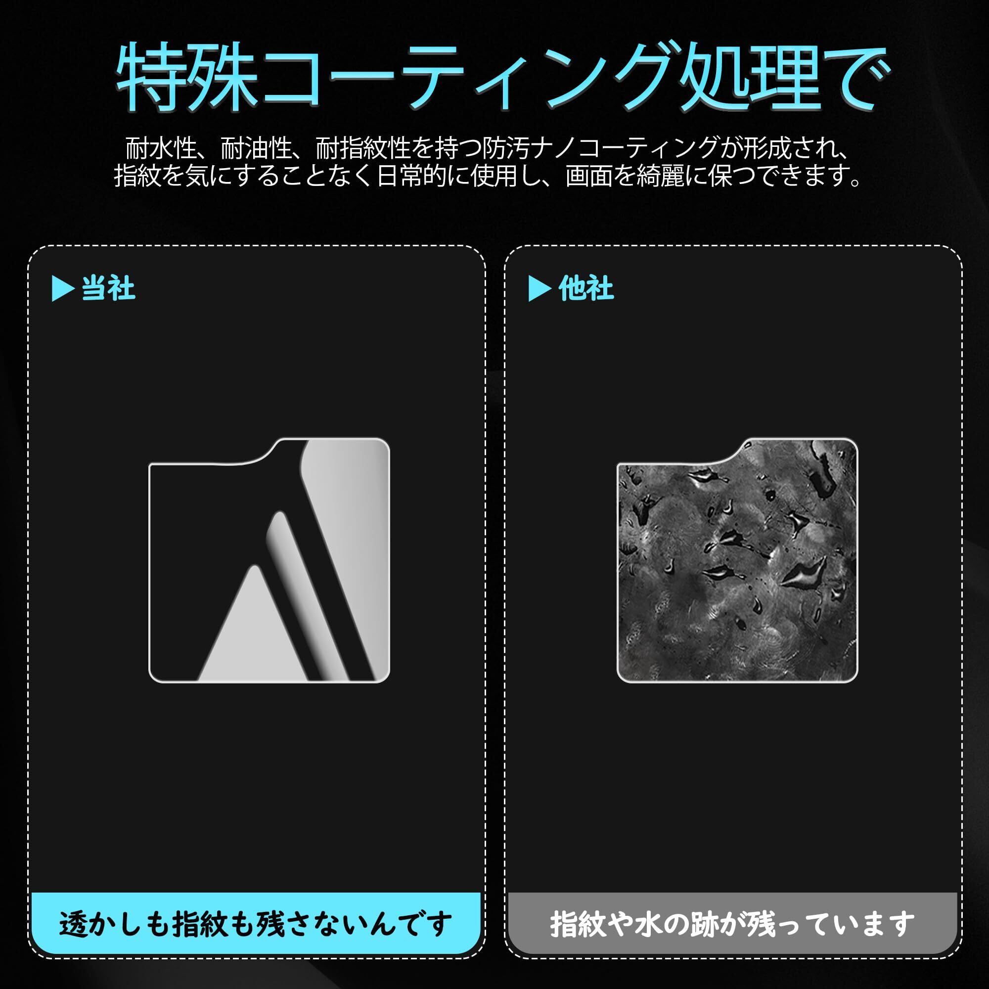 【指紋防止、高感度タッチ】ガラスフィルムには撥油コーティングが施されており、指紋や汚れなどに強くなめらかな操作感を実現、付着した汚れなどは簡単に拭きとれます。こちらは高耐久撥油コーティングが施され、つるつるな滑り感を実現!ゲームしても渋くなし!