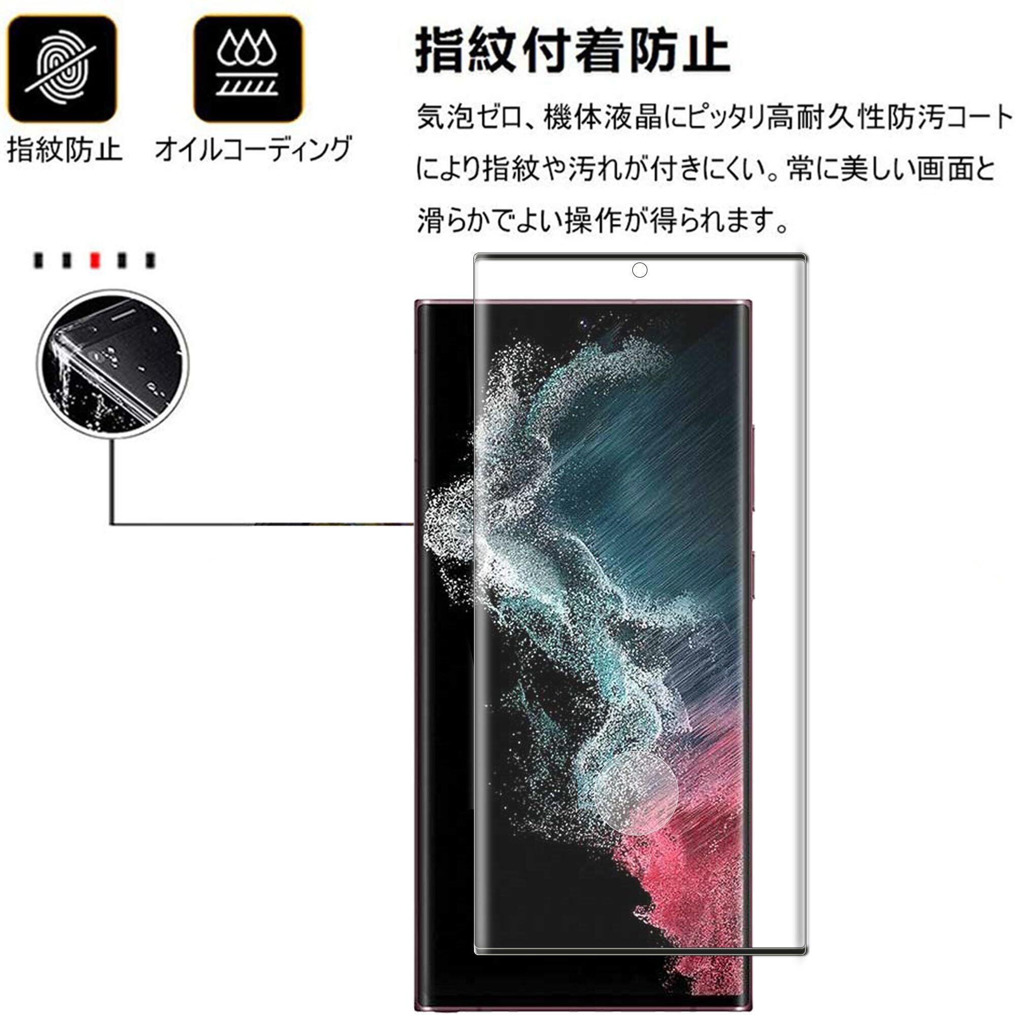 Nutmeg【2枚セット】Galaxy S22 Ultra フィルム【日本旭硝子素材採用】3D Touch対応 SCG14 SC-52C ガラスフィルム 3D熱彎技術 ギャラクシー s22 ultra 保護フィルム 超薄型 飛散防止 高透過率 耐衝撃 簡単貼り付 けキズ防止 指紋防止 耐久性 液晶保護フィルム 強化ガラス(ブラック)