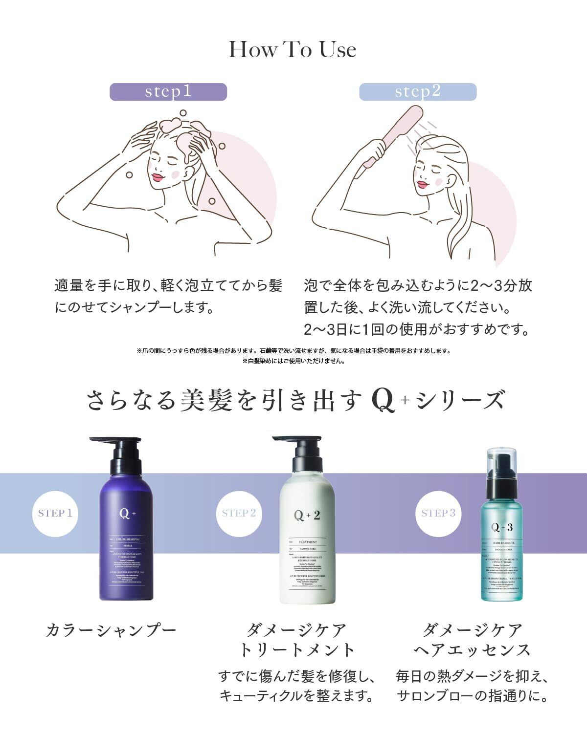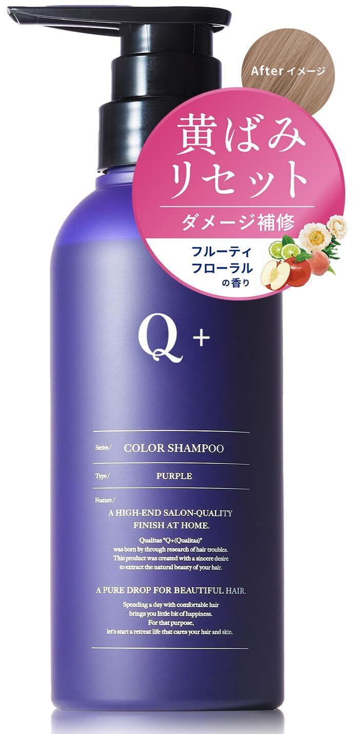 ✨【 サロン仕立ての髪色、そのままに。 】「カラーキープ×ダメージケア」を叶え、ツヤ感溢れるまとまり髪へ Q+( クオリタス ) のむらさきシャンプー|●明るめのアッシュ ●黄ばみやすい金髪 の髪色にオススメ
