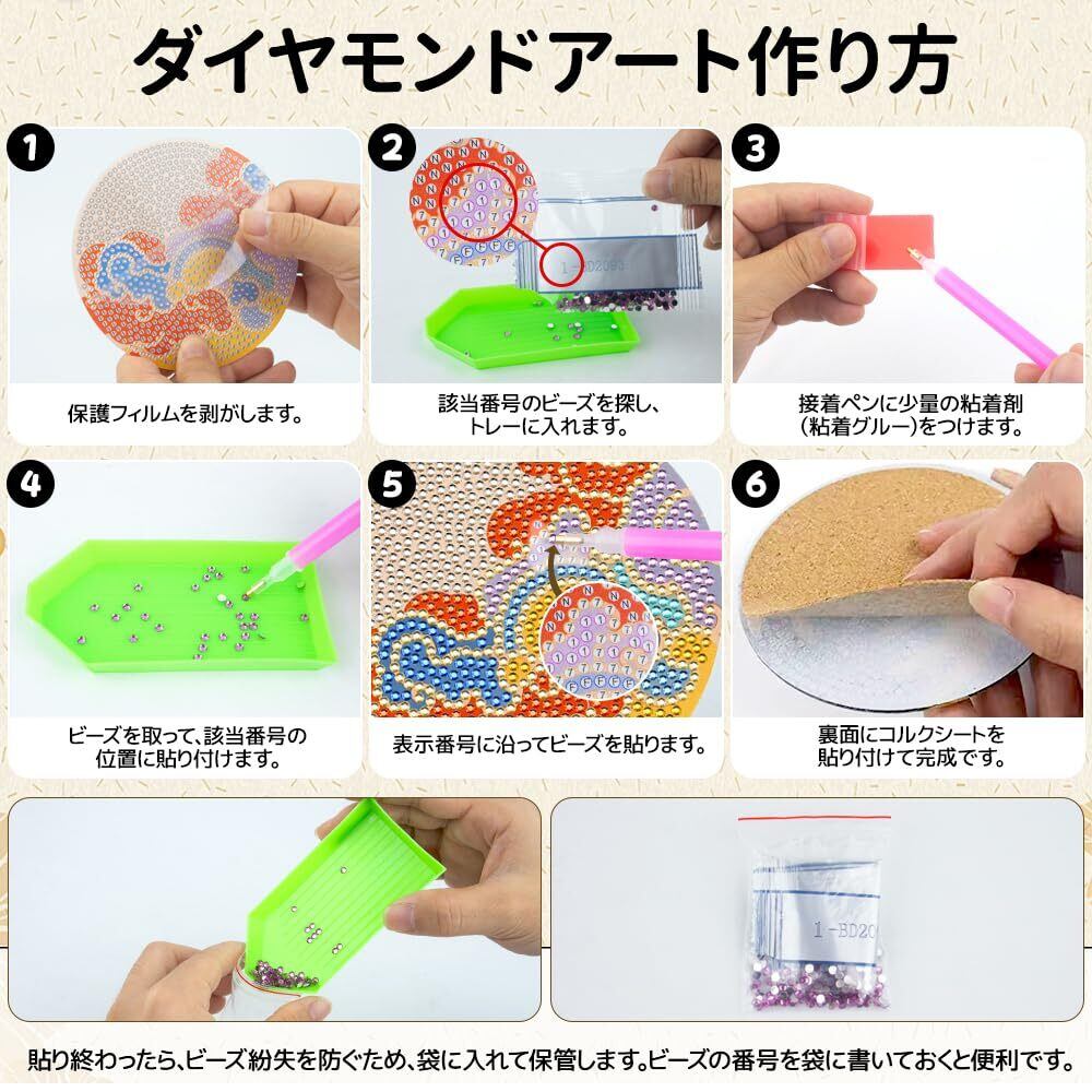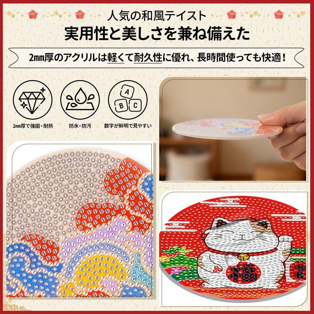 ダイヤモンドアート コースター キット ビーズアート 6枚セット 和風 5D ダイヤモンドペインティング DIY おじゃれ 正月 ダイアモンドアート セット ホルダー付き 人気 手作りキット プレゼント クラフト用品 初心者 大人 子供用 手芸キット 贈り物 記念日 誕生日 クリスマス 新年 ギフト