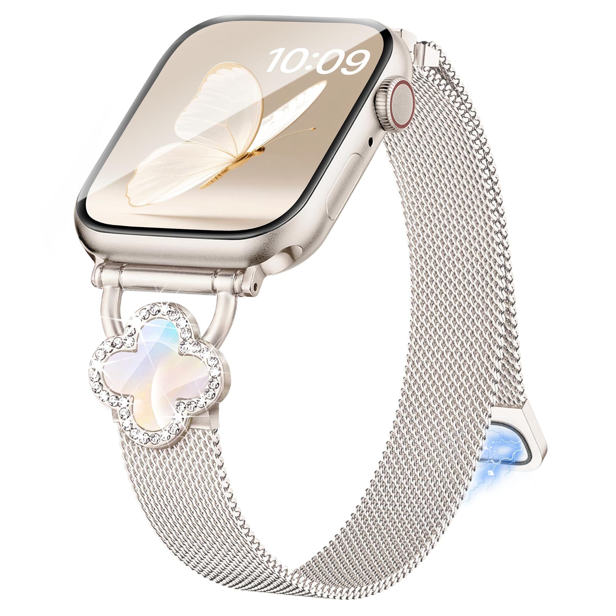 【特価セール】[Bokoios] キラキラマグネットベルト互换アップルウォッチ バンド レディース38mm 40mm 41mm 42mm 44mm 45mm 46mm 49mm、四つ葉のクローバーApple Watch バンド、ステンレスコンパチブ かわいいアップルウォッチベルト互换 Apple Watch Series 11 10 SE 9 8 7 6 5 4 3 2 1 Ultra
