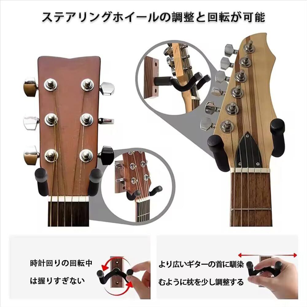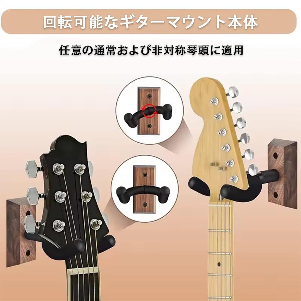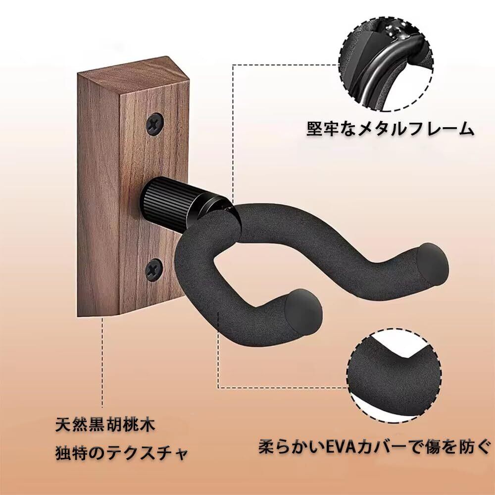 ギター 壁掛け ハンガー フック 吊り下げ式 ギタースタンド 壁掛け ウクレレスタンド ギター壁掛け用 ウォールナット製 ネジ付き 高耐久 ギターハンガー 省スペース収納 各種ギター対応