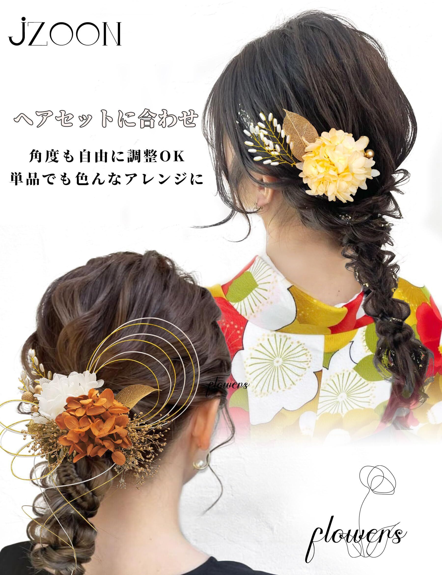 [JZOON] 9色展開 髪飾り 成人式 袴 卒業式 和装 結婚式 振袖 ドライフラワー プリザーブドフラワー かすみ草 金箔 紐アレンジ 水引 赤 A6001