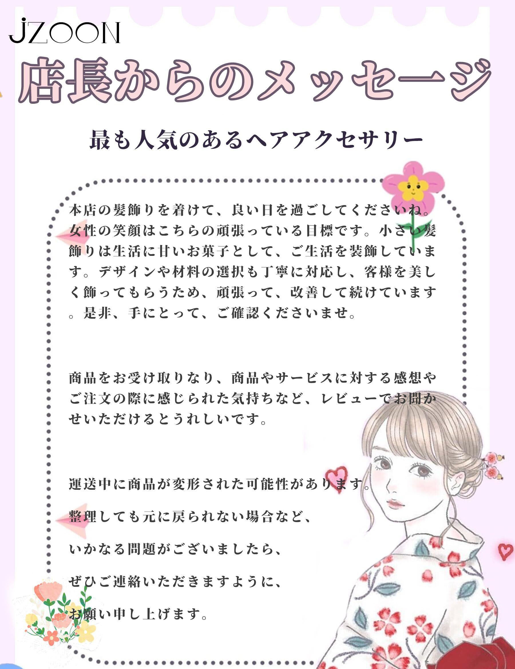 【品質】JZOONはいつでも高品質のヘアアクセサリーと比類なきアフターサービスを心掛けております。なにかご質問等がございましたら、お気軽にお問い合わせください。必ず24時間以内に返事し、問題を解決させていただきます。