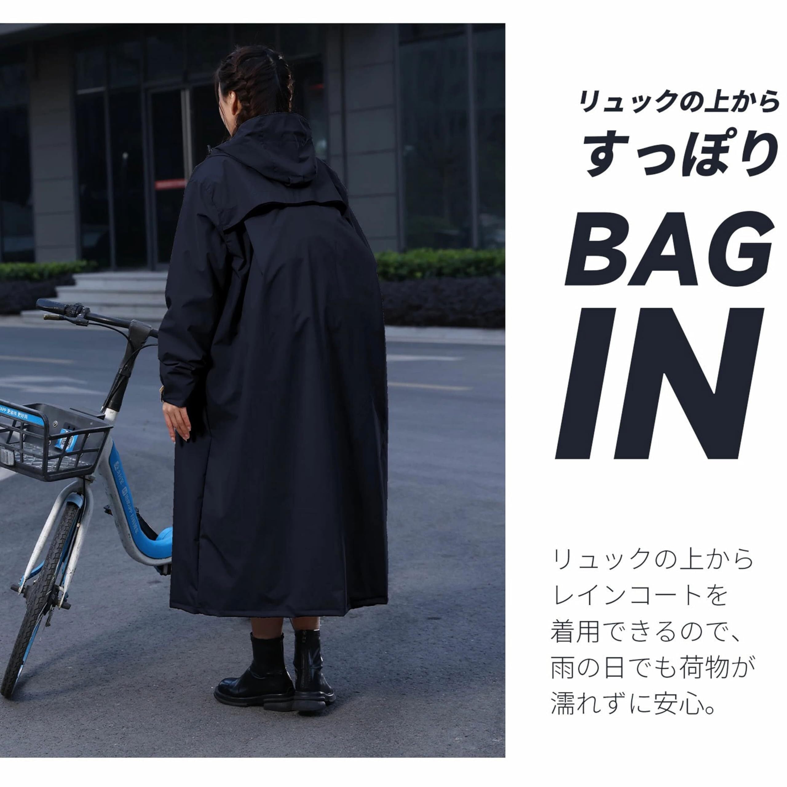【リュックの上から着用OK】リュックを背負ったままでもすっぽりカバーできる余裕のあるシルエット。 通勤・通学やお買い物の際も荷物が濡れずに安心!